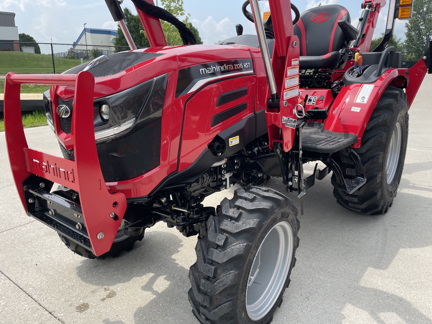 This is the all new Mahindra 2123. This extremely user friendly and comfortable 23 HP tractor comes with a loader, a skid steer quick attach bucket, R4 tires, twin touch HST pedals, a three range HST transmission, a push button PTO, a 4-in-1 quick connect loader hose hookup, a fender mounted joystick, a HD brush guard, a 1,477 Lb. Loader lift capacity, FAST hydraulics, and so much more.