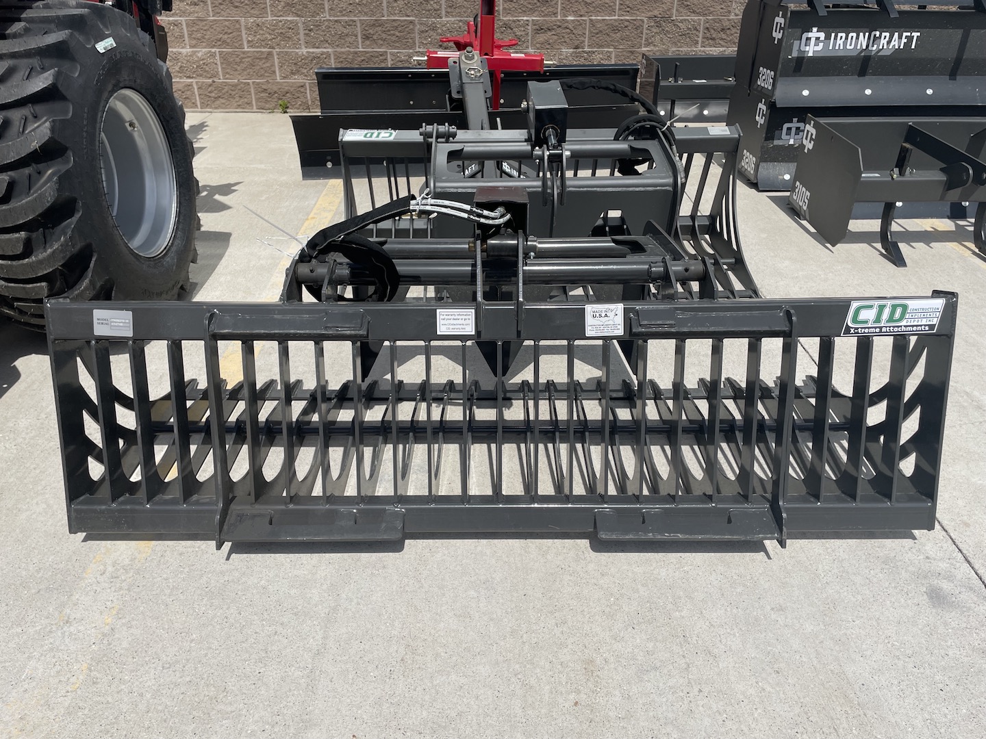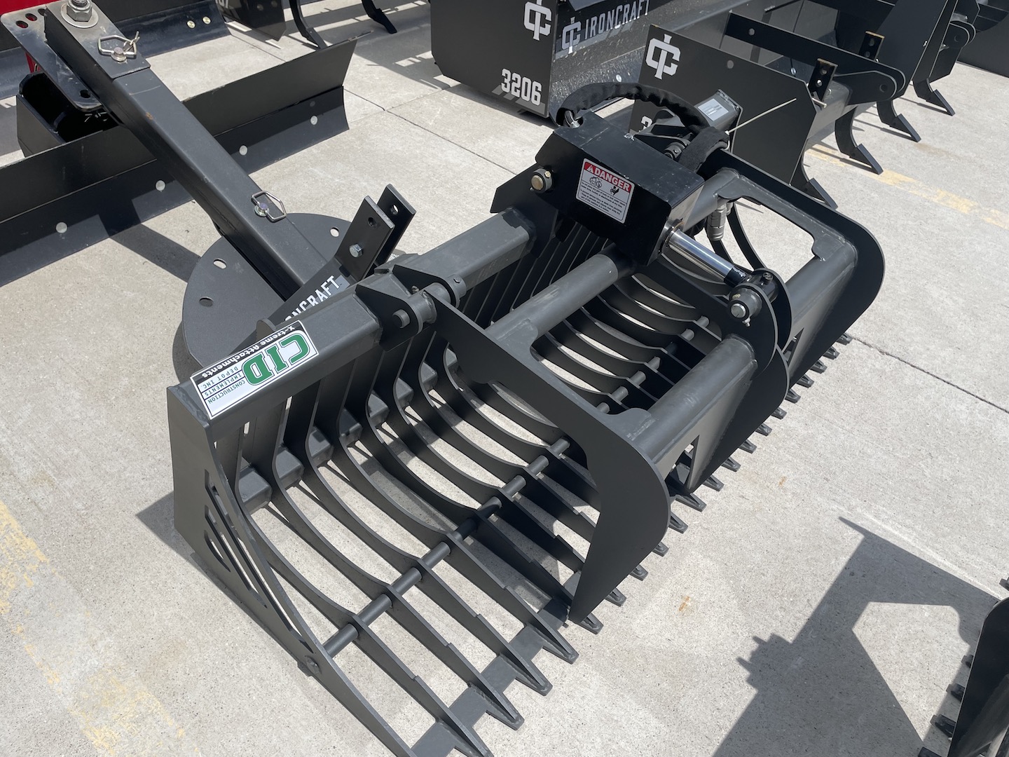 Our Rock Grapple has a tine spacing of 2 7/8″ which is great for sifting through dirt in order to remove rocks, debris, and other material. You can also pick up large rocks, logs, brush or just about anything else by use of the grapples that can close at various gaps to handle irregular shapes. 35-60 HP Recommendation Grease Points at Every Pivot Point Made in the USA 1 Year Warranty Pioneer or Flat Faced Couplers Included